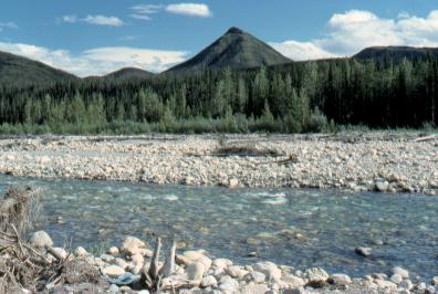 A view of the foothills of the Rocky Mountains, and the Tetsa River.