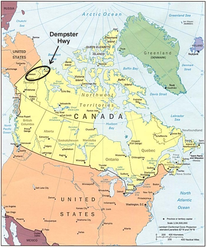 Dawson City to Inuvik and back in the summer (it had been a winter road prior to