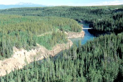 It sits right on the Yukon River (visible
